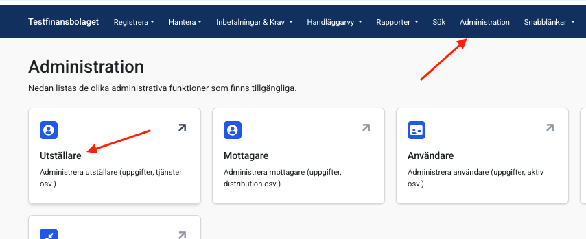 Navigera till utställaren: Gå till Administration -> Utställare.