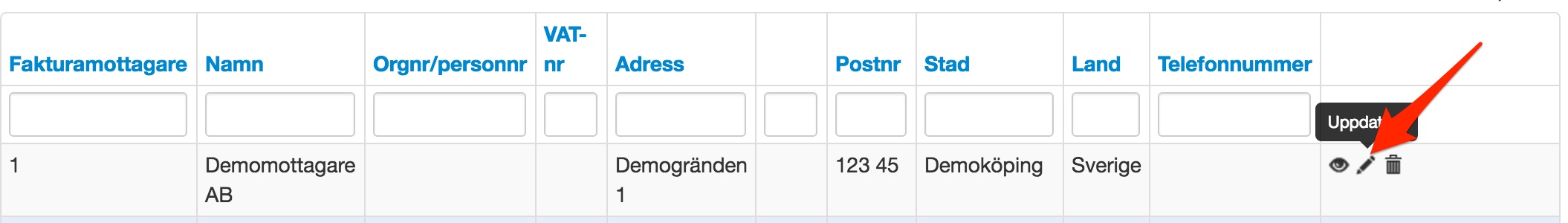 Sök upp aktuell mottagare och klicka på den ligga pennan för att uppdatera