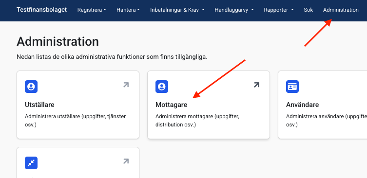 Navigera till mottagaren: Gå till Administration -> Fakturamottagare.