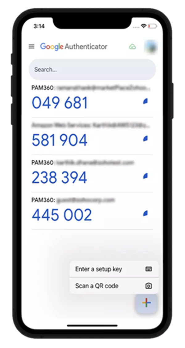 Lägg till nytt konto: Tryck på plusikonen (+) eller QR-kodikonen i appen.