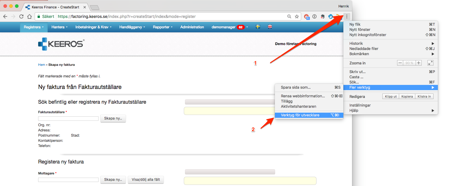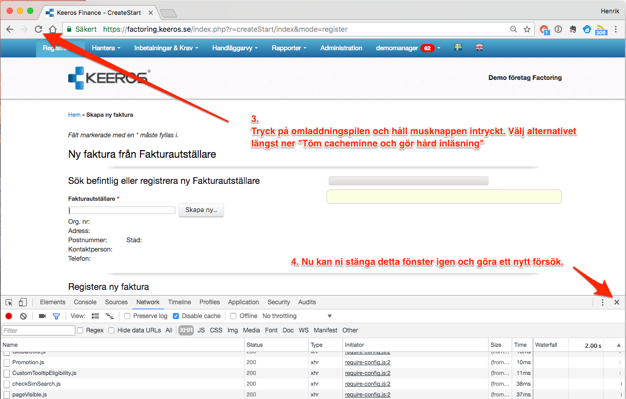 För att tvinga webbläsaren att hämta den nyaste koden från Keeros följer du stegen nedan.