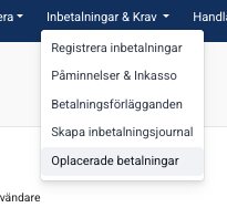 För att arbeta med och placera tidigare okända betalningar går du till vyn Inbetalningar & Krav -> Oplacerade betalningar.