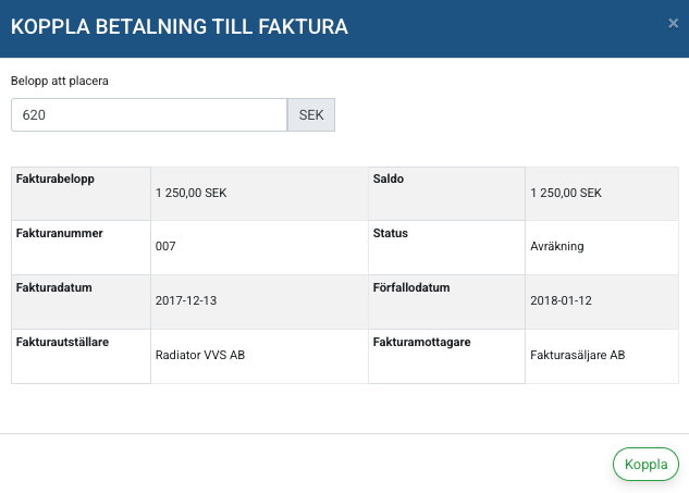 1. Koppla betalning till faktura