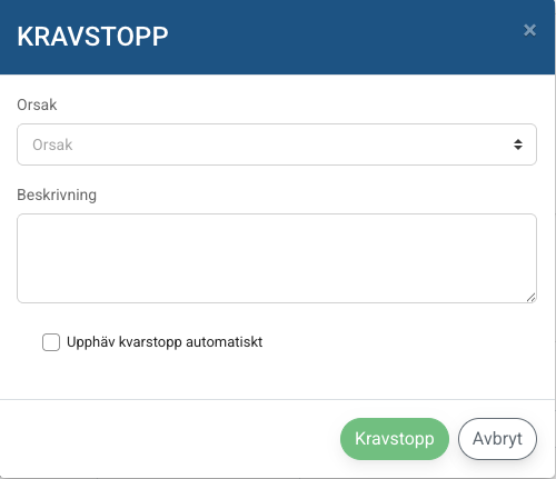 Aktivera stopp: Klicka på knappen Kravstopp.