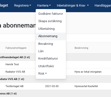 Ett abonnemang bygger på att det finns en mallfaktura som systemet kopierar vid angiven tidpunkt och skapar en ny faktura baserat på mallfakturans fakturarader och förfallotid.