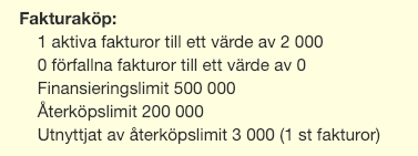 Fakturan är nu godkänd trots att vi inte fått den leveransgodkänd. Vi har dock nyttjat 3000 från vår regresslimit som nu på kunden visar: