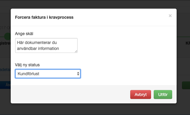 Nu kommer fakturan sättas om som Klar med status Kundförlust. Den försvinner ur reskontran men finns kvar i systemet och är sökbar.