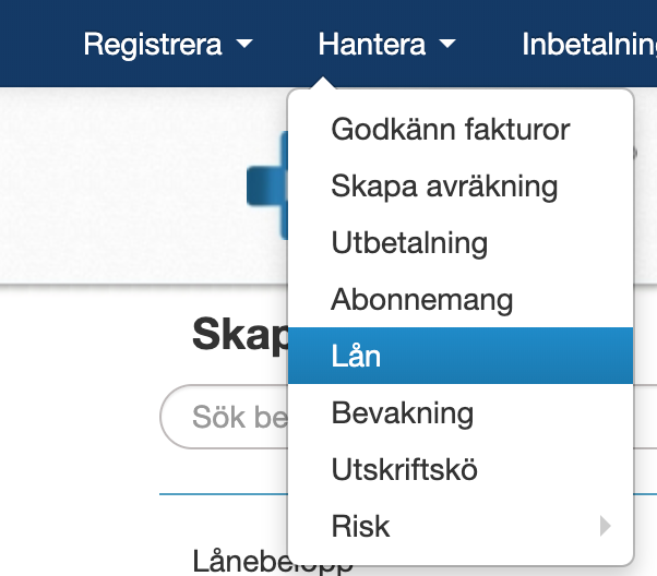För att slutföra ett lån behöver du först söka upp det. Det enklaste sättet är att navigera till Hantera -> Lån.