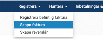Först behöver du skapa den faktura som skall vara grund för kommande fakturor. Vi kallar detta mallfakturan. Detta gör du via menyvalet Registrera->Skapa faktura