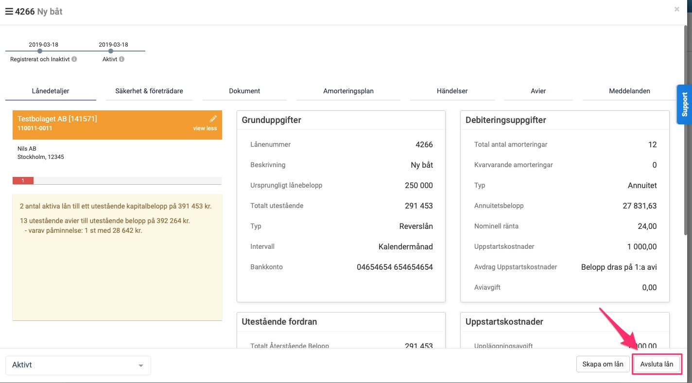 Där väljer du att avsluta lånet.