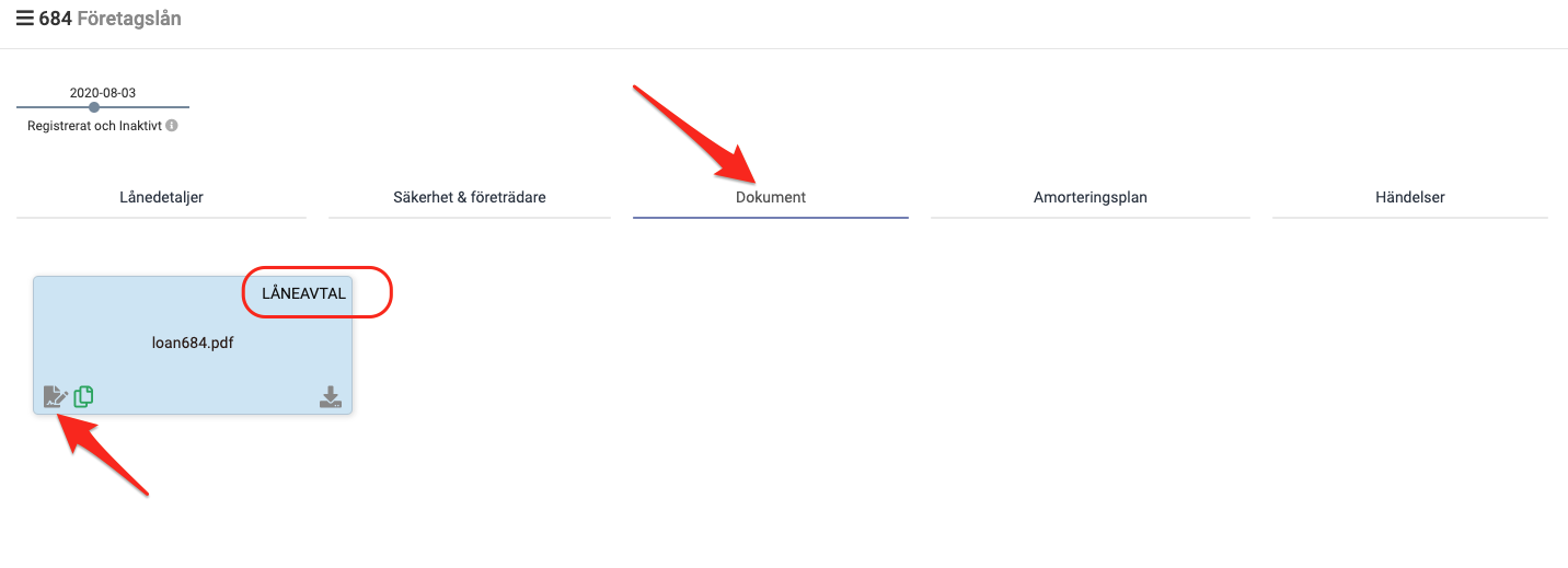 Gå till fliken Dokument på lånet.