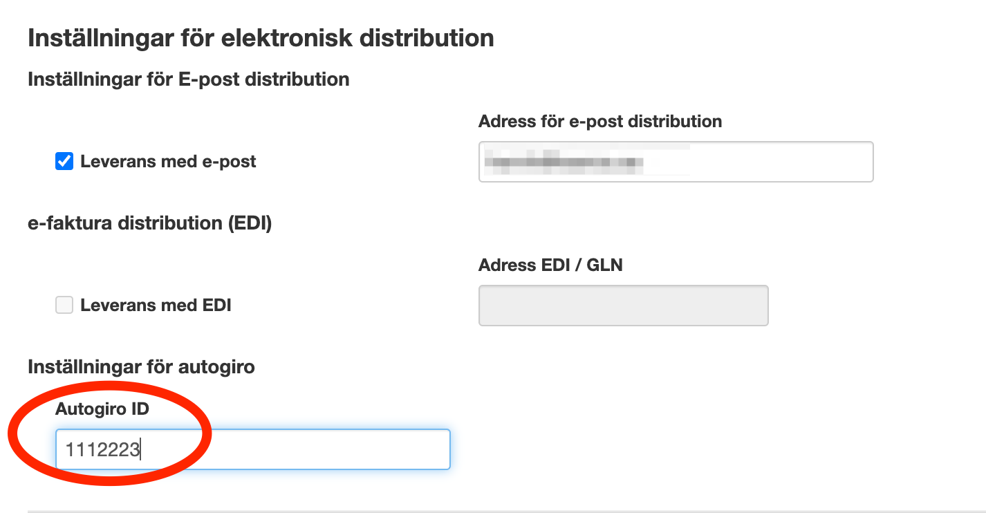 Sök upp mottagaren och fyll i deras unika ID i fältet AutogiroID.