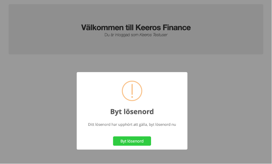 När du läggs upp som användare i Keeros Finance får du ett introduktionsmail som innehåller din inloggningslänk, ditt användarnamn och ett tillfälligt lösenord.
