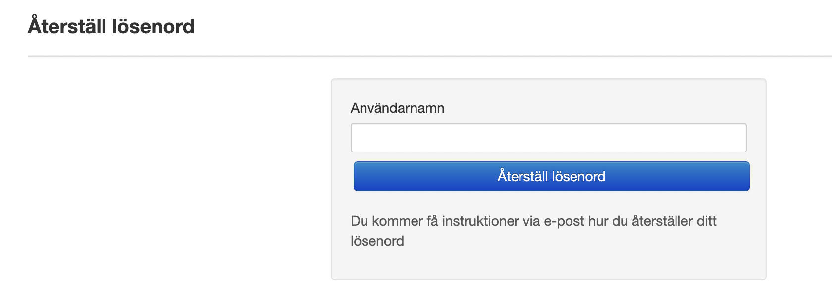 Skicka förfrågan: Tryck på knappen "Återställ lösenord".