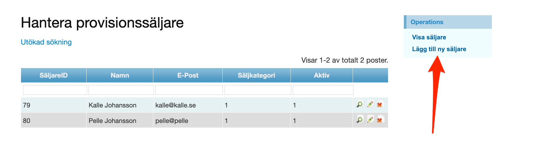 Affärsförmedlare och mötesbokare kan du dock lägga till själv genom att gå till Administration och där välja Provisionssäljare.