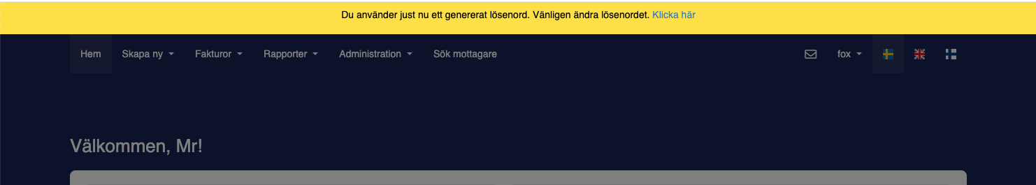 så kommer användaren återigen bli ombedd att byta ut det nya lösenordet.