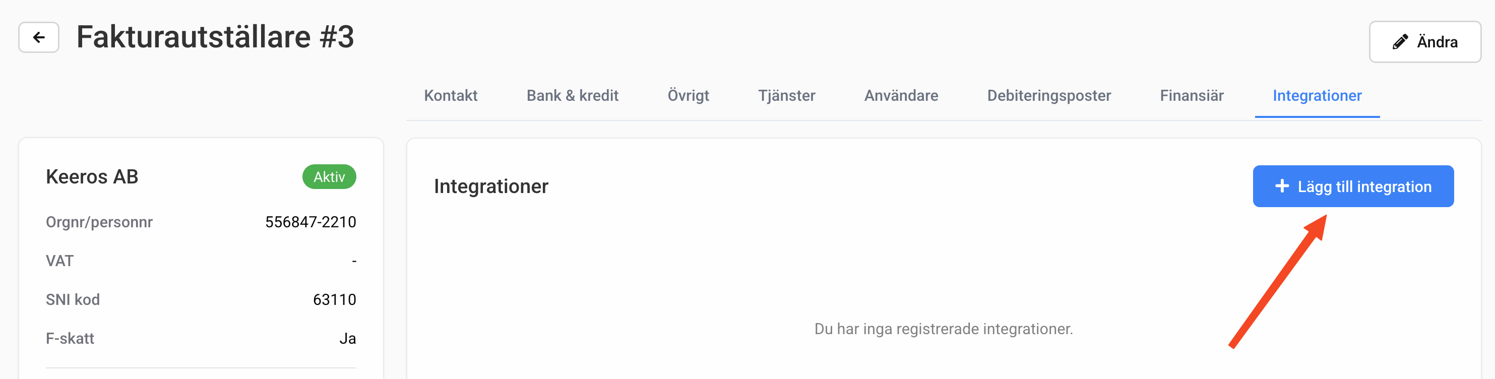 När de trycker på Godkänn behörighet kopplas systemet ihop. I Keeros visas då integrationen som "Aktiv" istället för "Inväntar godkännande".