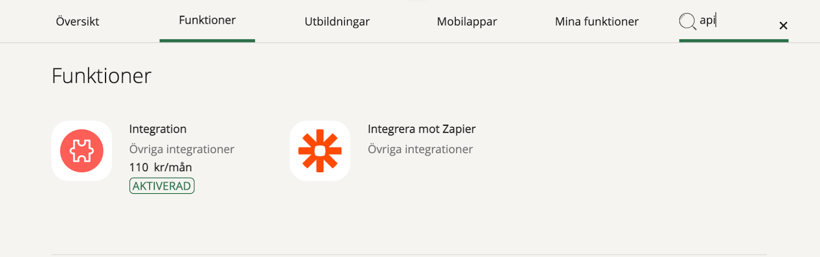 Observera att kunden måste ha funktionen “Integration” aktiverat i Spiris, under “Fler funktioner”, innan beställningen görs i Keeros.