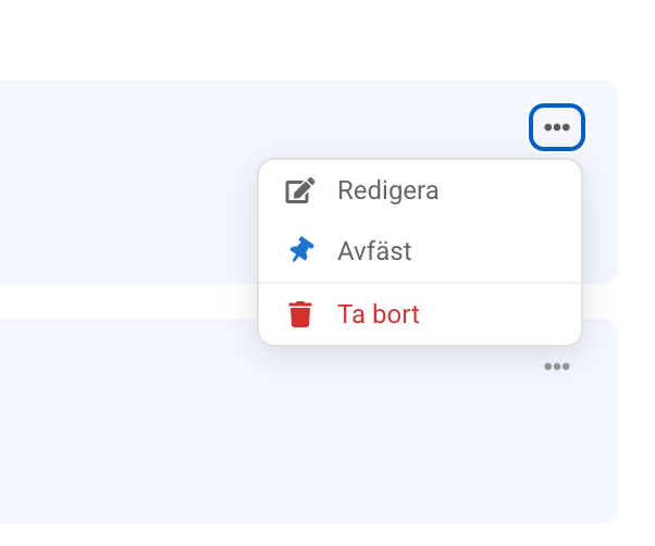 Klicka på de tre punkterna till höger om anteckningen och välj Fäst/Avfäst. En fäst anteckning visas alltid överst och har blå bakgrund.