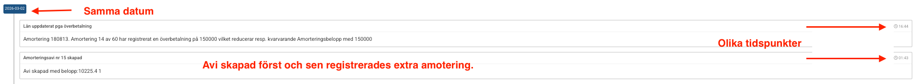 Kl. 16:44: En extraamortering registreras i systemet senare samma dag.