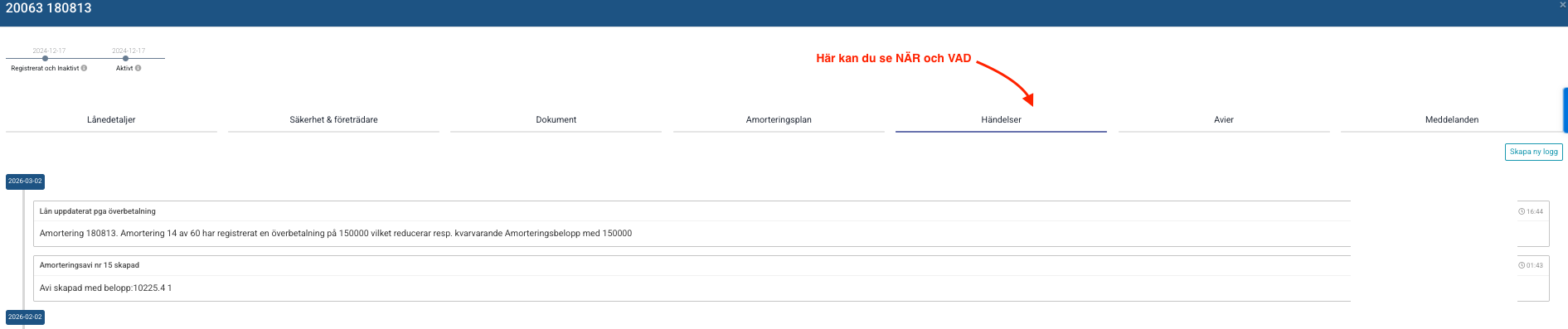 Kontrollera amorteringsplanen: Du kan själv verifiera att allt står rätt till genom att titta på lånets kommande betalningar i portalen. Där ser du att ränteunderlaget och slutsumman har uppdaterats korrekt för framtida aviseringar.