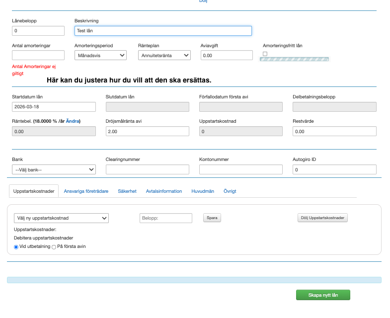 För att systemet ska generera en ny, korrekt betalplan behöver du skapa om ånet igen med de uppdaterade villkoren: